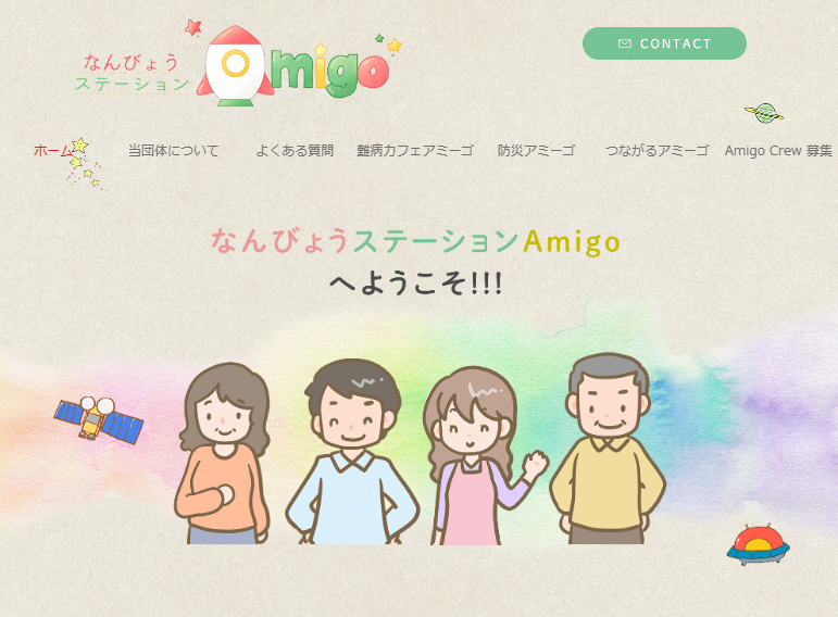 なんびょうステーションAmigoは、茨城県で「難病患者さんが疾患を問わず、フラッと気軽に立ち寄れるカフェのような交流会を開催しよう!」と患者有志が設立した難病カフェ「アミーゴ」の延長線として作成したホームページです。